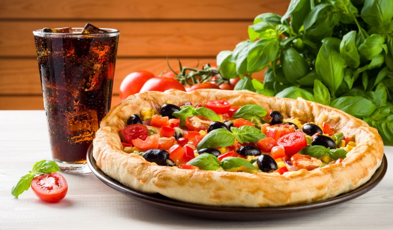 rajčica, feferoni,masline, jaje, špek, ajvar, vrhnje, šunka, sir, gljive, kukuruz, luk, tikvice